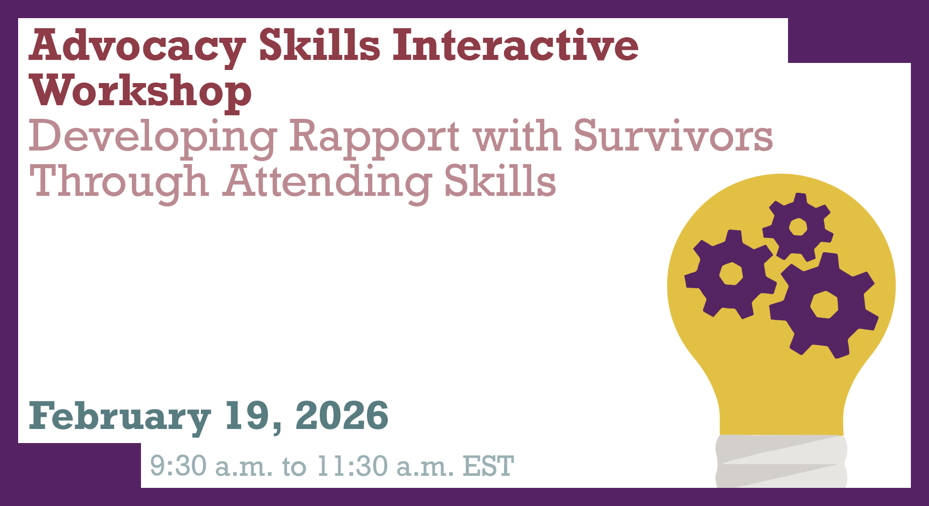 The eLearning Network provides a variety of educational opportunities for advocates, allied partners, and others wishing to expand their knowledge of issues related to domestic violence. The online training materials may be in the form of modules, courses, videos, quizzes, and other learning methods.