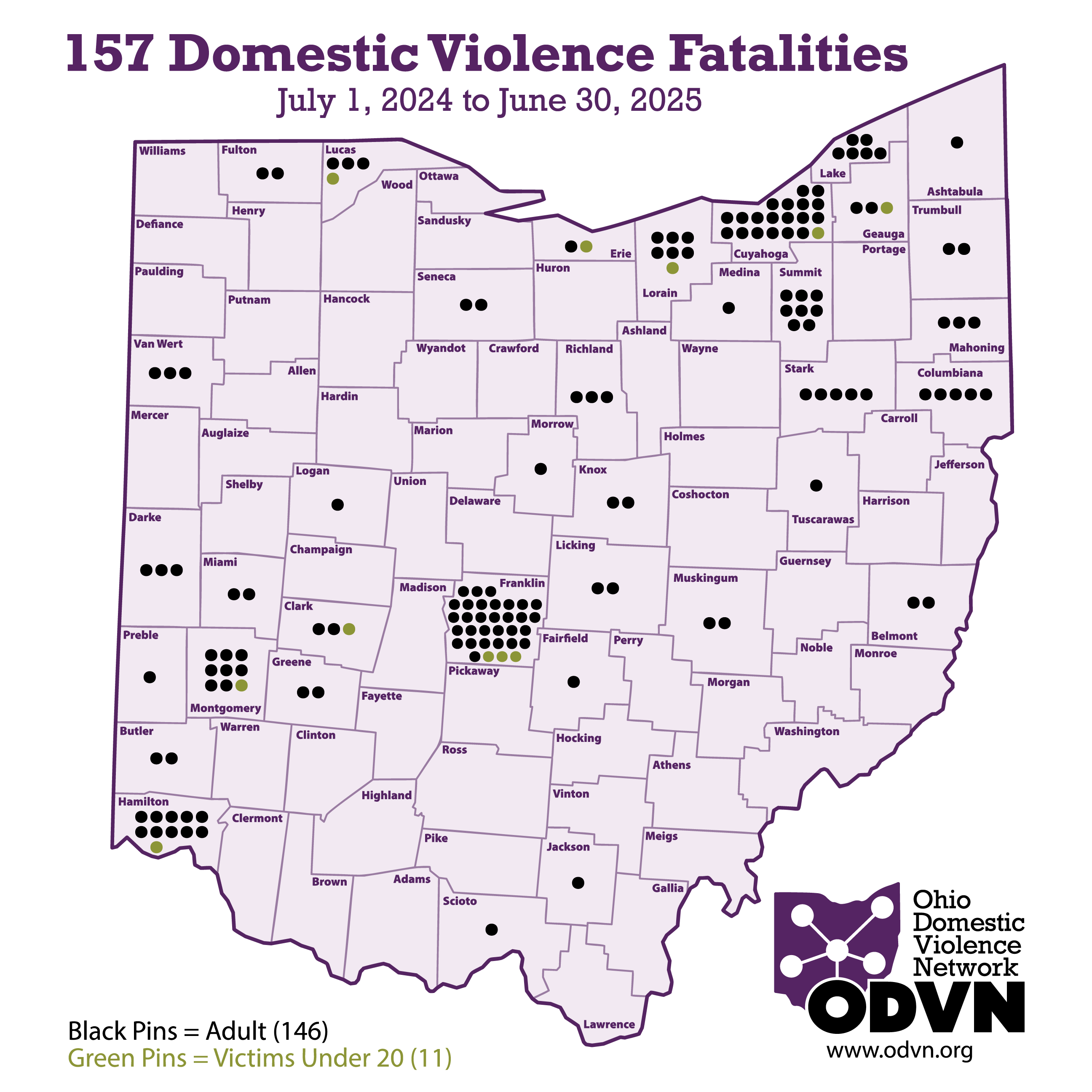 In October, ODVN releases the annual fatality report, which is compiled from media reports of intimate partner relationship fatalities identified by staff and member programs. The count includes targeted victims, perpetrators, and others who were present when the fatalities occurred.